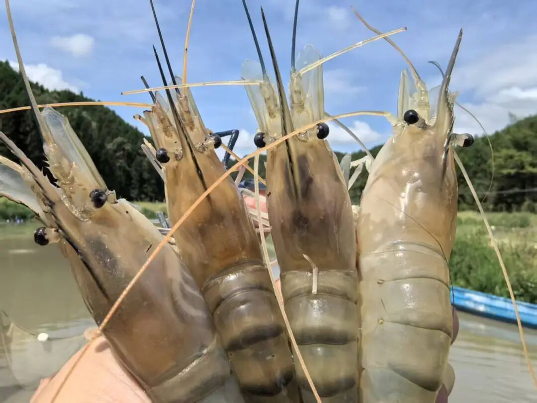 刚出水的罗氏虾,在篮筐中尽情舞动着湛蓝色的长臂,显得格外生猛有力。它们通体晶莹透亮,虾膏饱满,个头硕大。工人们迅速而熟练地将捕捞上来的一筐筐罗氏虾转换到临时养殖箱中,虽然忙碌,但脸上却洋溢着丰收的喜悦。